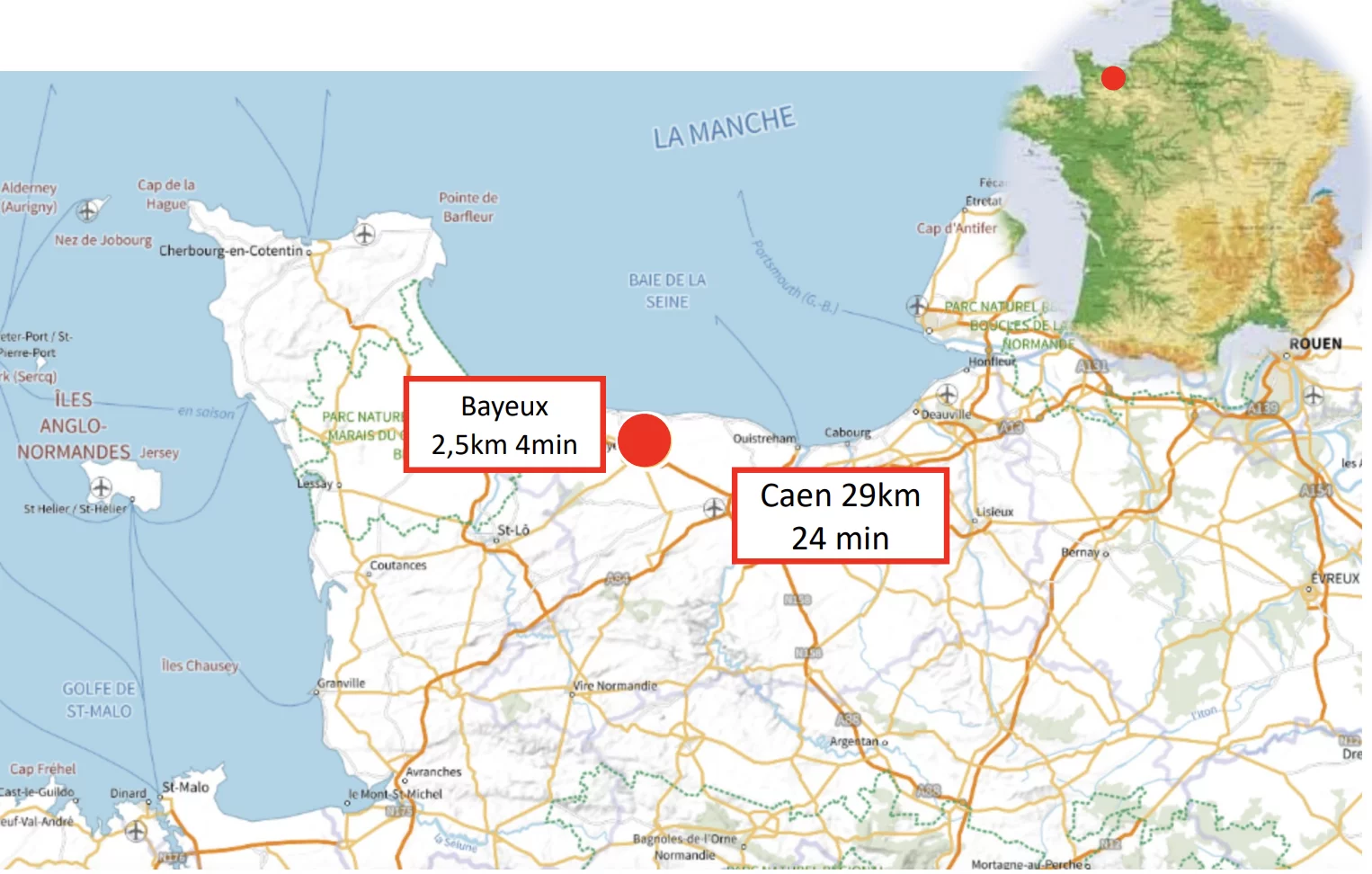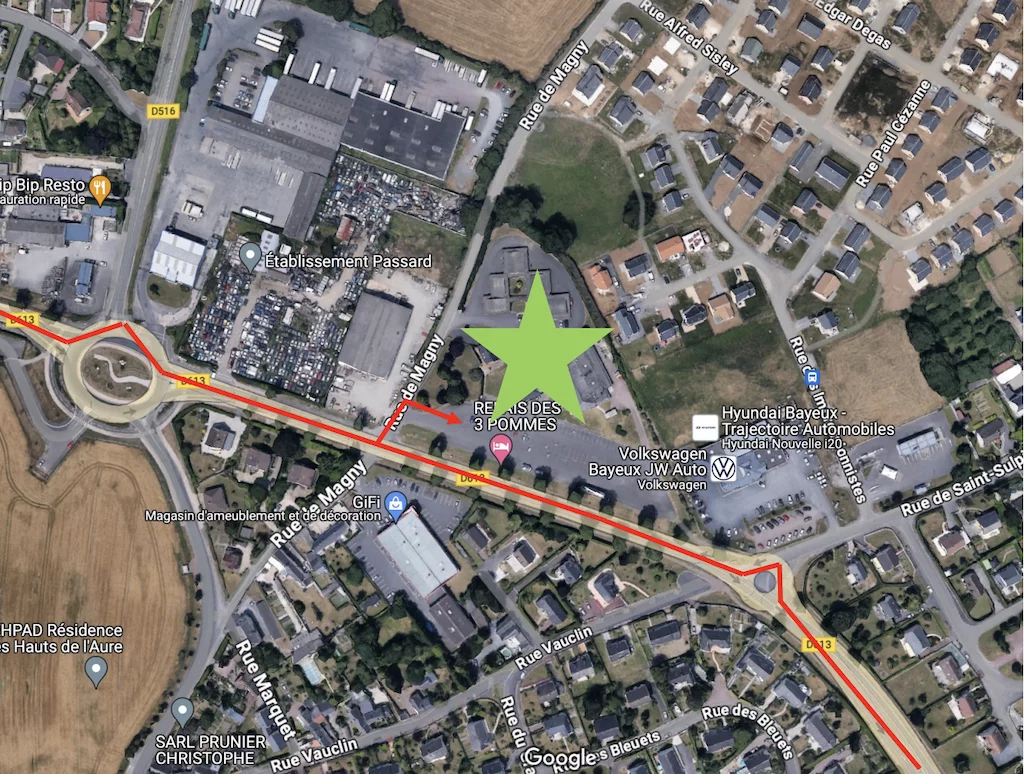 Le projet est situé sur la RD613, rocade de Bayeux- 12000 véhicules/jour ; et bénéficie d’une excellente visibilité et d’un accès aisé .